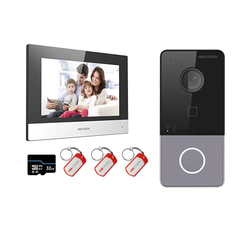 1.684,00 lei (TVA inclus)KIT videointerfon Smart pentru o familie, Rj45 + Wi-Fi 2.4Ghz, Switch PoE, Card, Tag, monitor 7 inch alb, – HIKVISION DS-KIS605-ASA