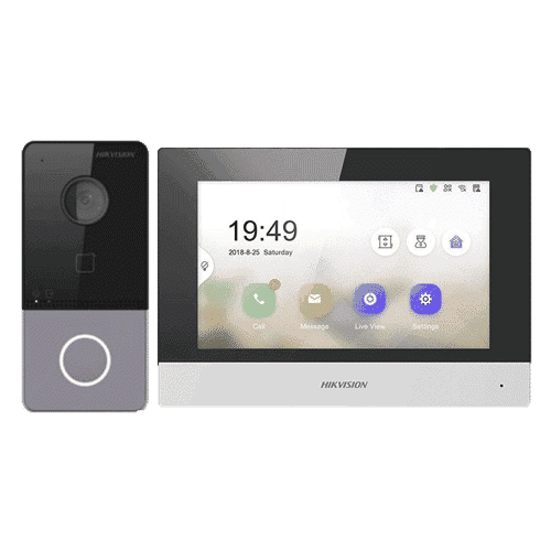949,46 lei (TVA inclus)KIT videointerfon TCP/IP RJ45 + Wi-Fi 2.4Ghz pentru 1 familie, monitor TFT LCD 7 inch – HIKVISION DS-KIS603-P