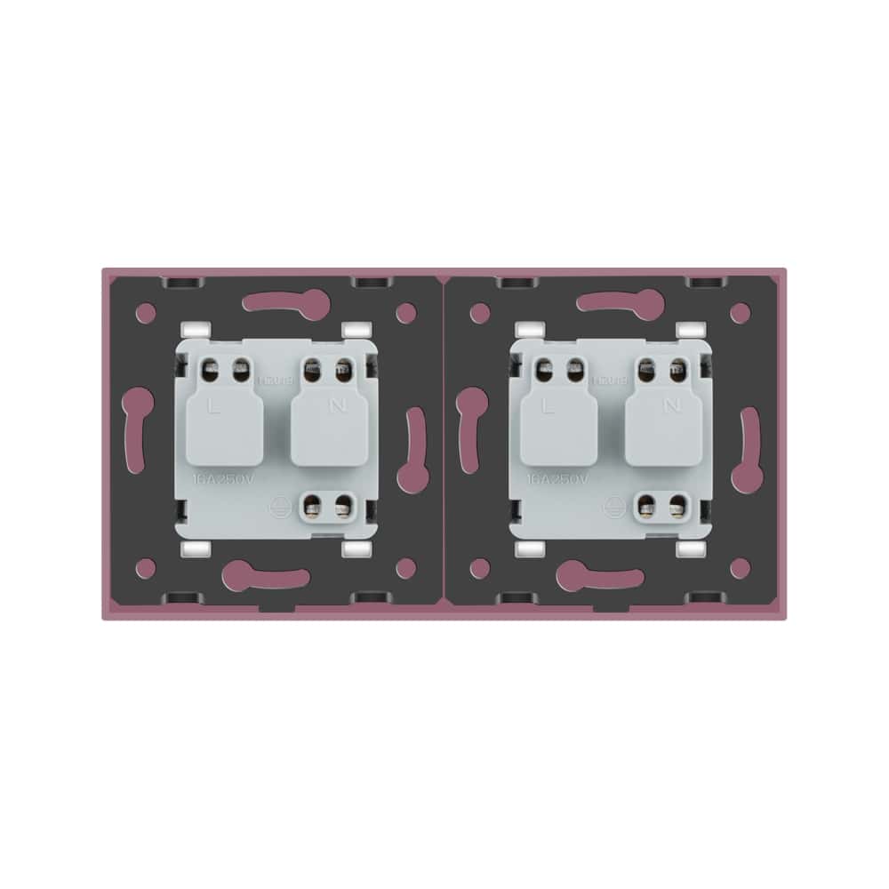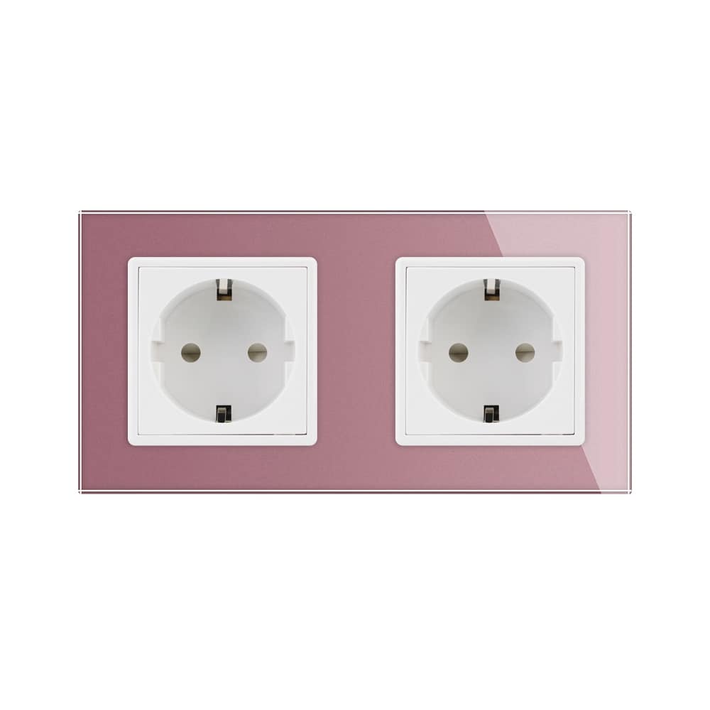 Priza dubla Livolo cu rama din sticla, roz, VL-C7C2EU-17
