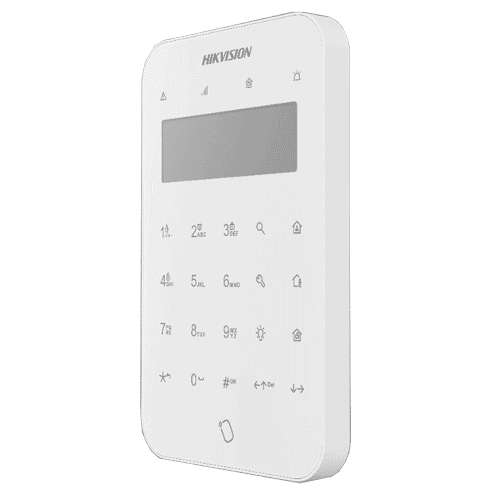 Tastatura Wireless, tehnologie Tri-X, LCD cu taste senzoriale si pictograme iluminate,, buzer integrat, afisaj LCD, activare alarma incendiu, buton panica si alarma urgenta medicala cu o singura atingere. Functii precum: Armare, Oprire alarma, Dezarmare, Activare alarma cu o singura atingere, Control releu, Verificarea erorilor de sistem, Configurare rapida. Cu ajutorul aplicatiei Hik-ProConnect ,dispozitivul poate fi configurat de la distanta. Suport de citire TAG-uri incorporat. Alimentare cu 4 baterii tip CR123 (incluse), distanta comunicare cu centrala AX PRO de maxim 1.200 metri in camp deschis.